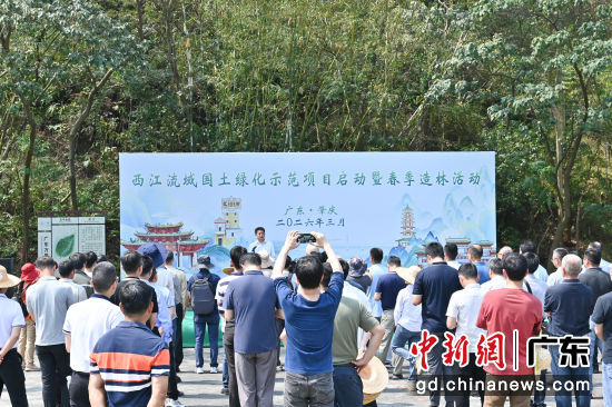 3月25日,广东西江流域国土绿化示范项目开工暨春季造林活动在广东省肇庆市举办。据介绍,该项目是广东省纵深推进绿美广东生态建设的一个重大工程,总投资13.17亿元,项目覆盖林地62万亩,建成后将形成136个千亩以上连片优质森林大斑块。图为活动启动仪式。
