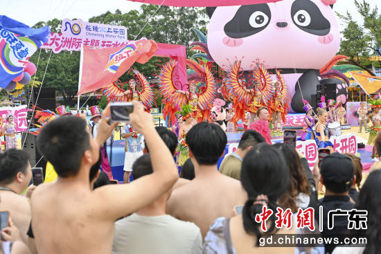 4月17日,广州长隆水上乐园正式开园,以“超级全球玩水圈”拉开2026年夏日玩水的序幕。图为开园活动上的歌舞表演。