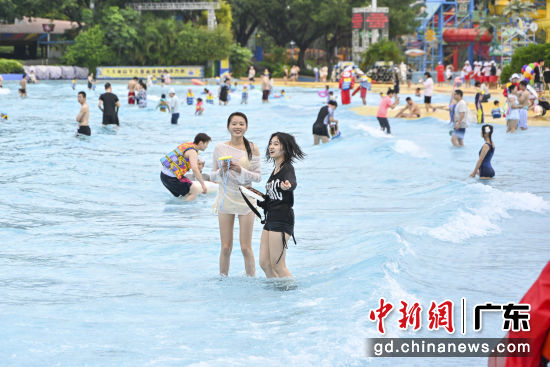 4月17日,游客在广州长隆水上乐园游玩。