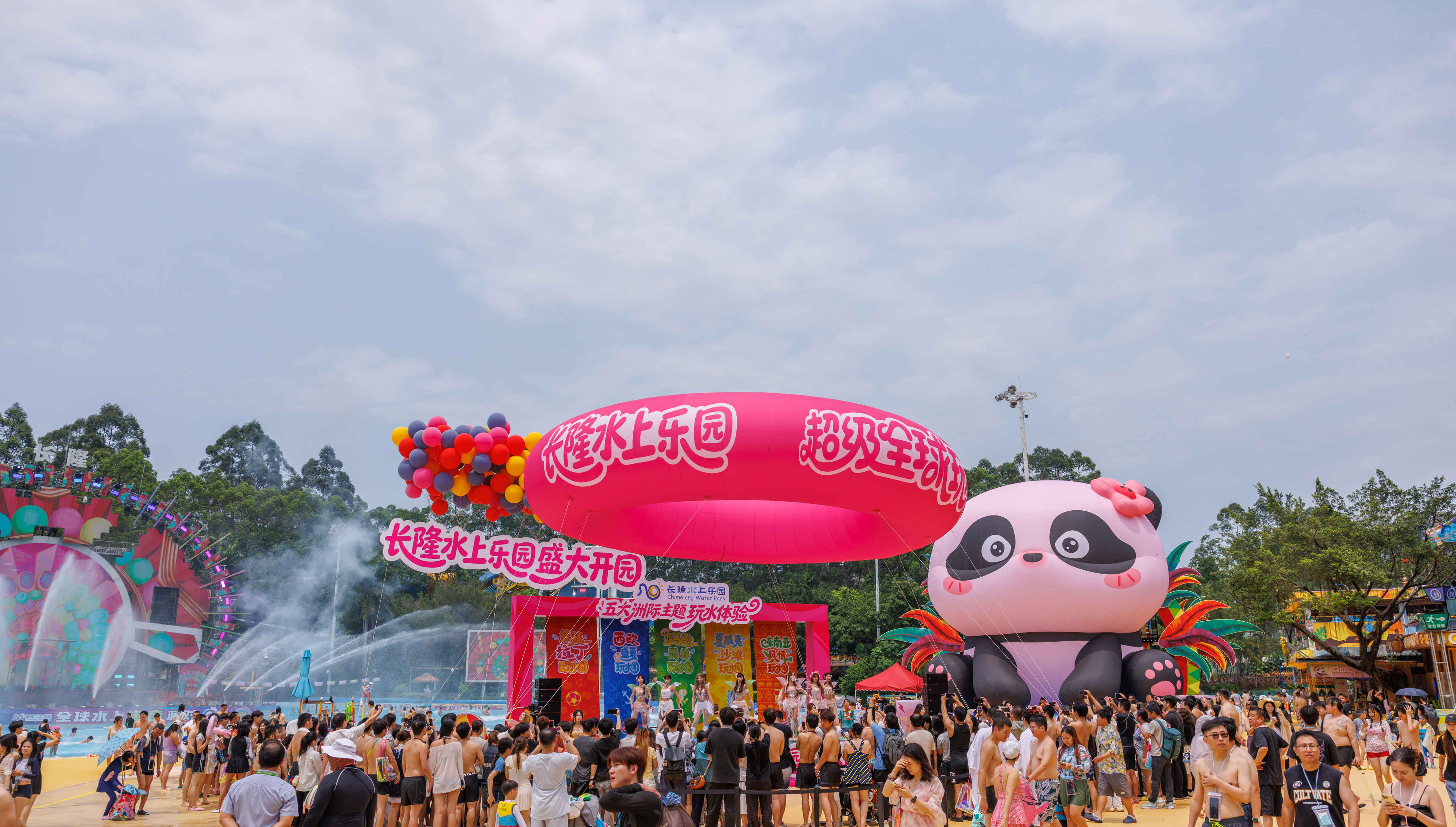 “超级全球玩水圈”五大洲际主题玩水新体验于当日同步开启,一站式解锁多元环球风情:东南亚风情玩水圈里,泰式风情歌舞轮番上演;西欧盛夏玩水圈里,让游客一秒开启沉浸式欧洲阳光度假模式;亚马逊雨林玩水圈主打松弛疗愈,搭配舒缓的集体瑜伽体验;热辣拉丁玩水圈则以热情桑巴派对、水上漂浮舞台等项目点燃夏日激情;夏威夷沙滩玩水圈打造亲子家庭的欢乐天地。图为4月17日,广州长隆水上乐园开园活动上的歌舞表演。